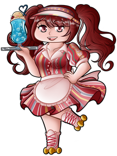 April 2 | 157 cm | EN/ESWelcome to the Pop Shop!I'm Ellie Rockette, your friendly neighborhood pop shop waitress. I run a virtual malts and sweets shop here on the world wide web, dedicated to serving you with a smile! With a vast rotation available on my menu, I always have a daily special ready for you to pick from, like fast food zatsudons, sweet drink recipes, protein shake exercise, themed karaoke, and more!I hope my little shop gives you a chance to take a seat and sip on a cold milkshake for a well-deserved break. Speaking of breaks, I'm just about to take mine - mind if I sit with you?
